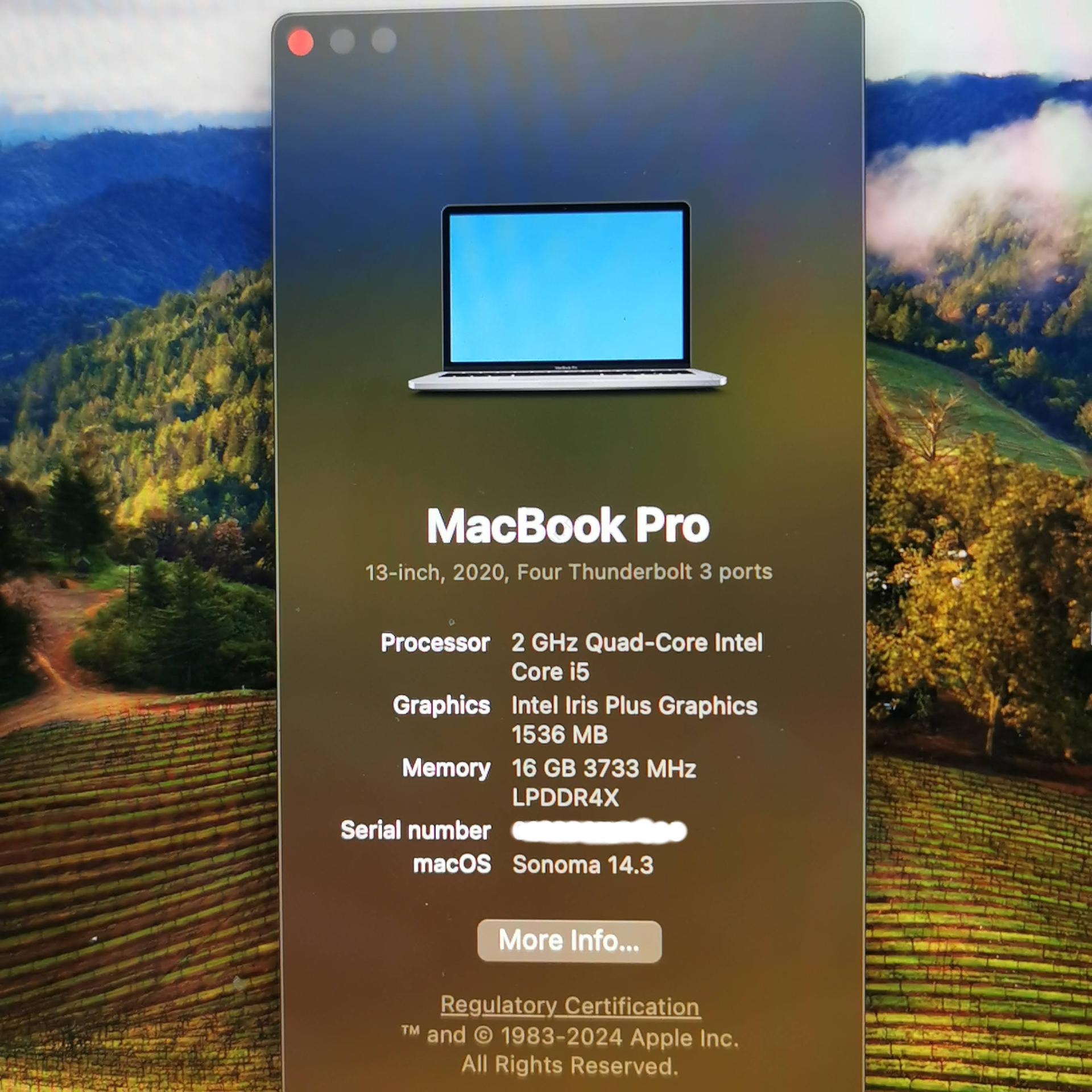 MacBook Pro Retina 13 2020 16GB RAM, 512GB SSD 4x ThunderBolt 3 Ports